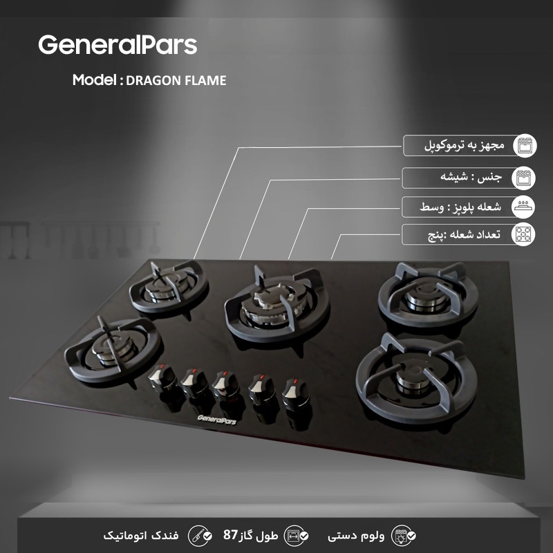 اجاق گاز صفحه ای جنرال پارس مدل Dragon Flame
